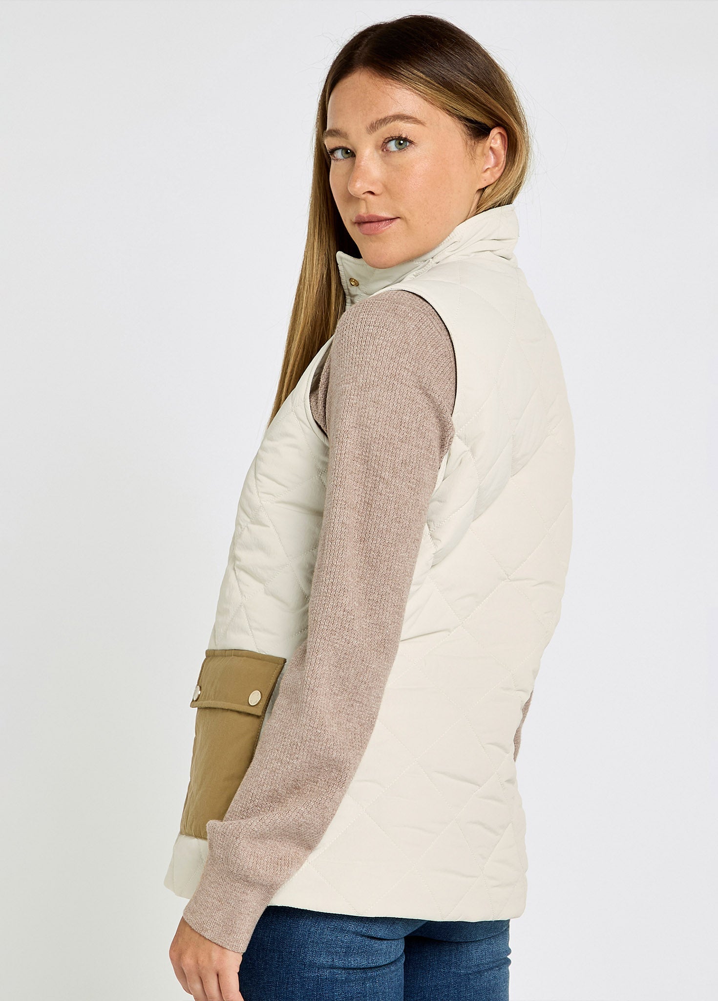 Unsere Clashmore Weste verbindet traditionellen Country-Charme mit modernem Design. Die feine, gesteppte Weste mit Stehkragen besteht aus soft-touch Nylon und wird durch markante Fronttaschen aus Halley Stevenson Wachs-Baumwolle ergänzt. Sie ist das perfekte Kleidungsstück für jede Jahreszeit, ob als Oberbekleidung im Frühling und Sommer oder Zwischenschicht an kalten Tagen.