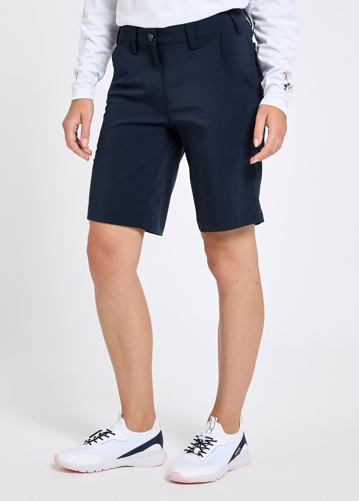Klassischer Yachting-Stil trifft auf durchdachte Funktionalität. Unsere neuesten Crew-Shorts für Damen sind für aktives Segeln konzipiert und eignen sich ebenso für entspannte Stunden an Bord wie an Land.